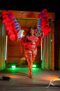 (1) Costume including beach shorts and accessory pieces.